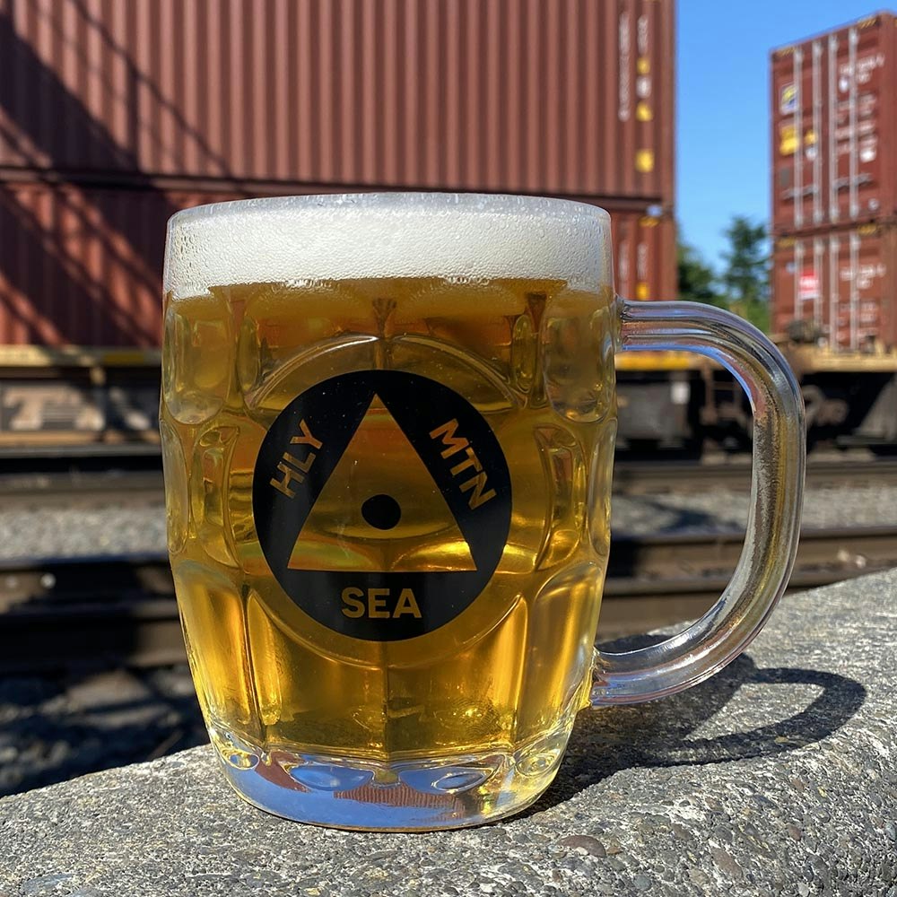 Our logo on a 19.25oz dimple stein. These are finally back after being unavailable to us for a couple of years – you might want to get two.