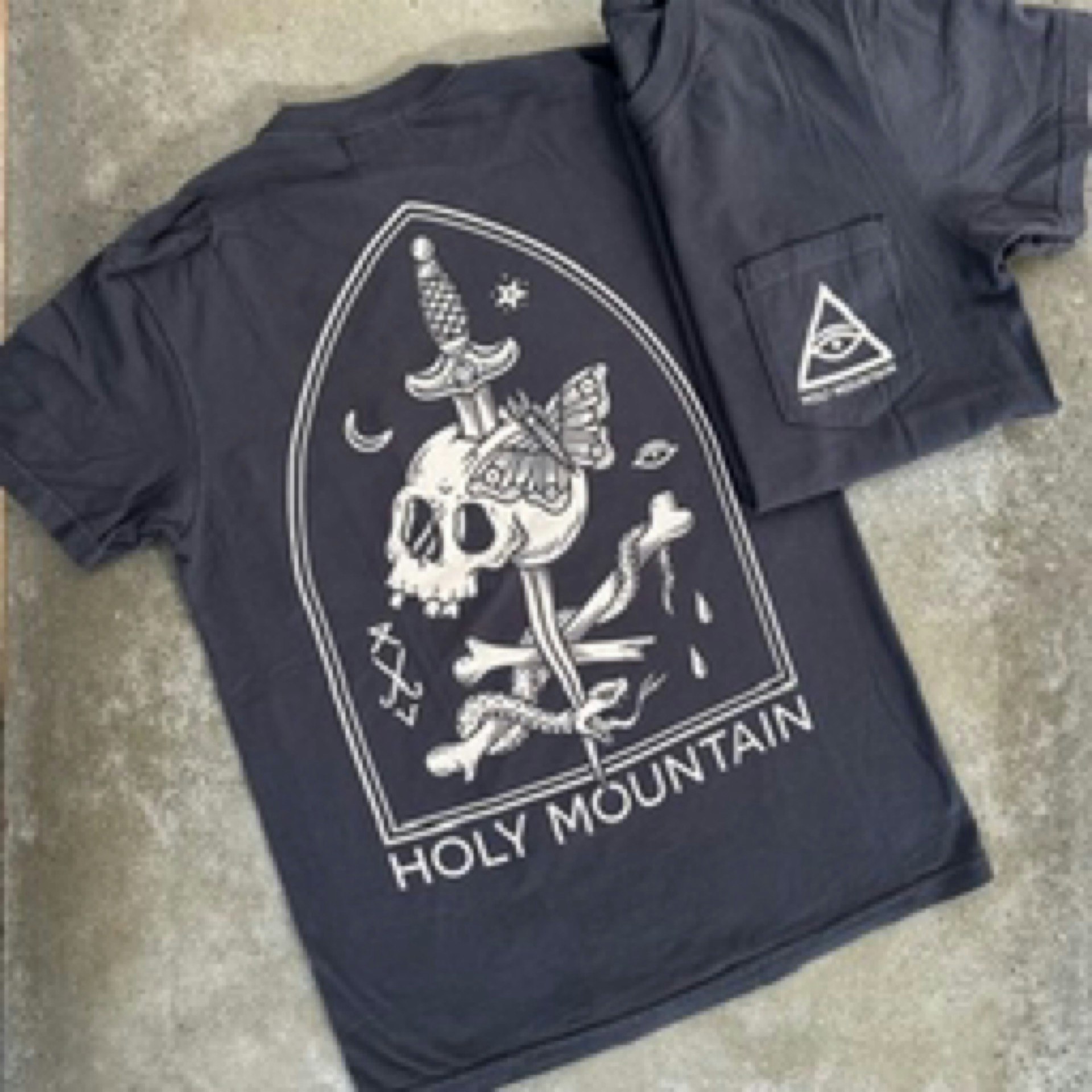 Off-white print on black Comfort Colors Pocket tee featuring the artwork from our new Black Beer cans on the back and small eye and logo on the front left pocket.