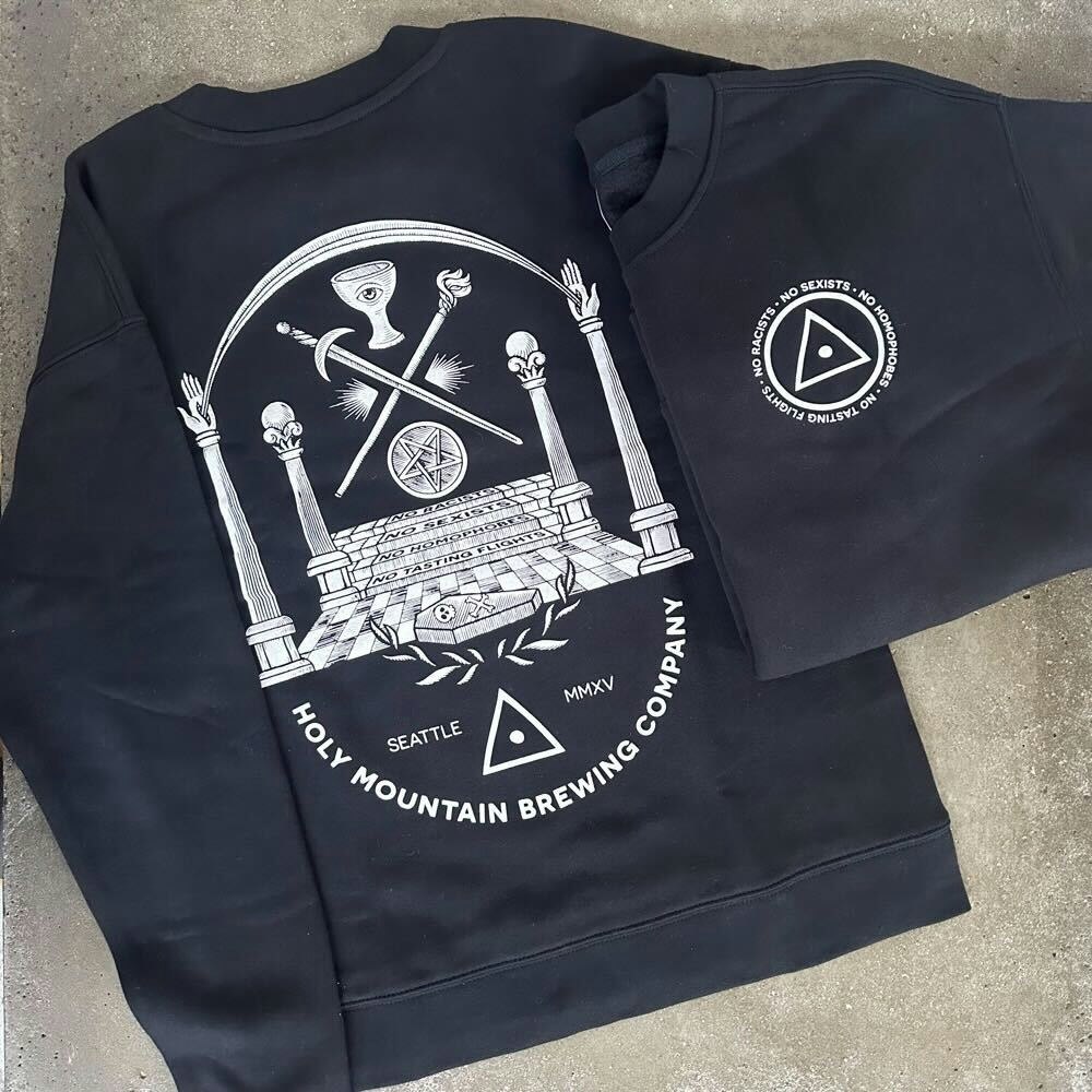 This super soft black ASColour crew neck sweatshirt has our taproom rules on the back and a smaller version of the taproom rules on the front left breast.