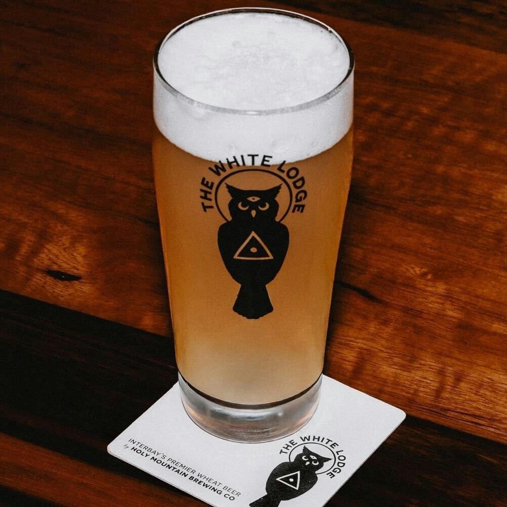 Our new White Lodge imagery on 16oz Willi Becher glass.